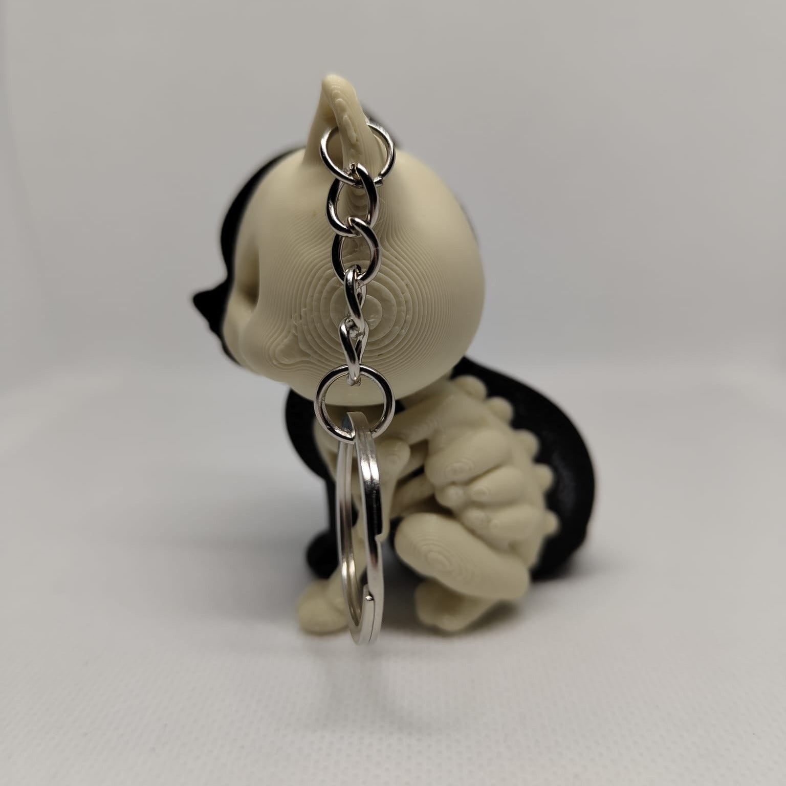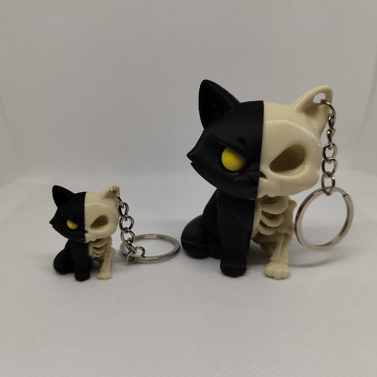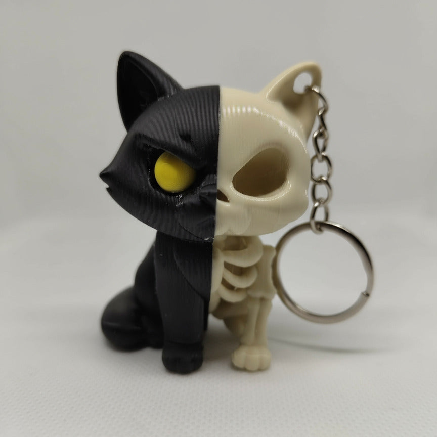 Dá um toque misterioso à tua coleção com este porta-chaves de gato meio vivo, meio esqueleto! Impresso em 3D com detalhe impressionante. Perfeito para fãs de Halloween ou simplesmente para quem adora gatos.
